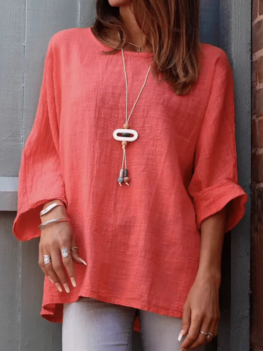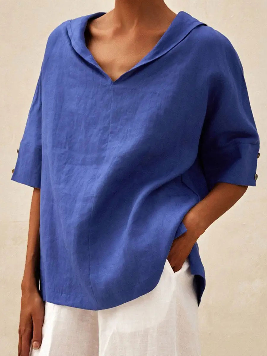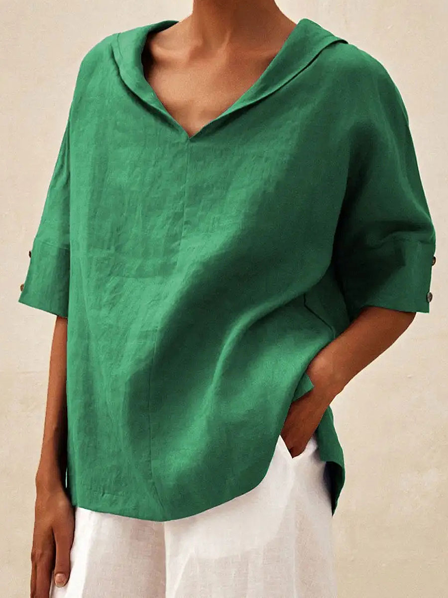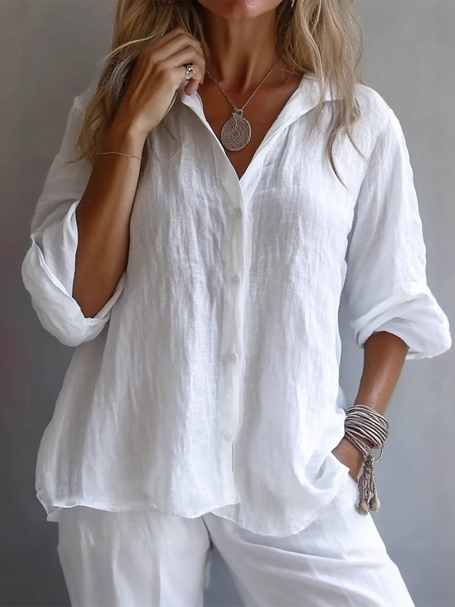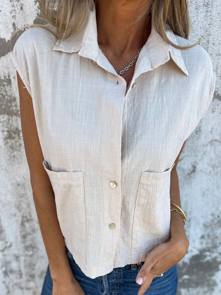Camisa de lino de color sólido y estilo sencillo para mujer