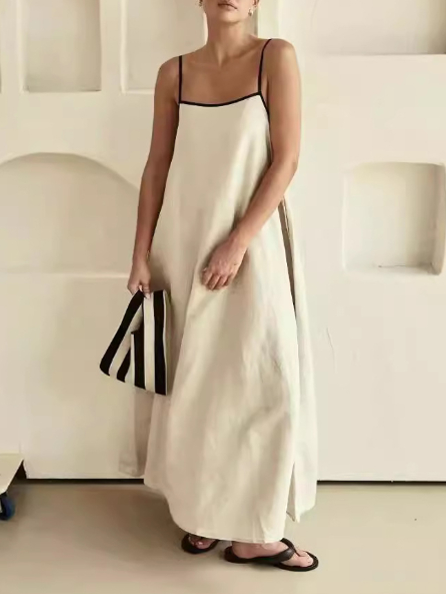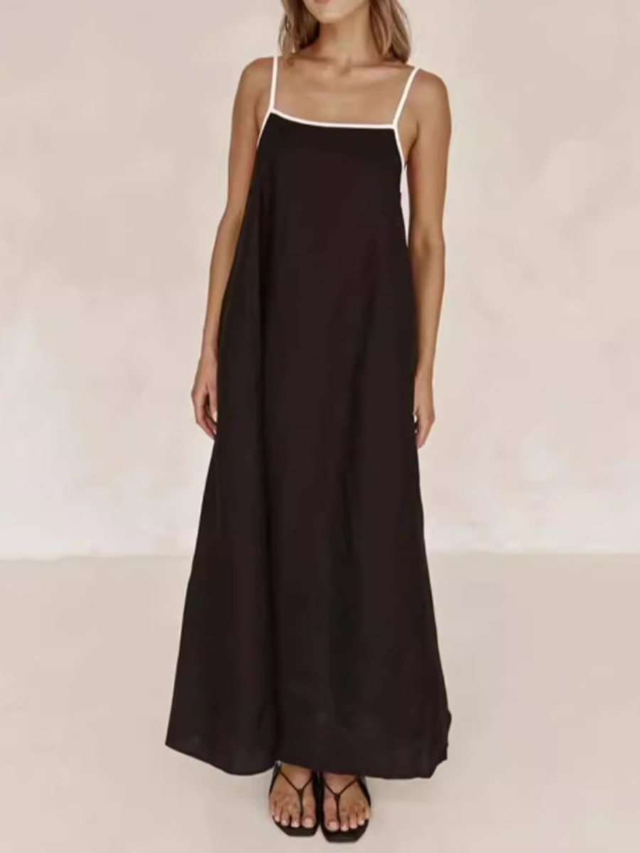 Vestido de algodón y lino de color de contraste de moda para mujer