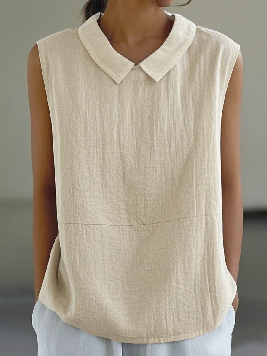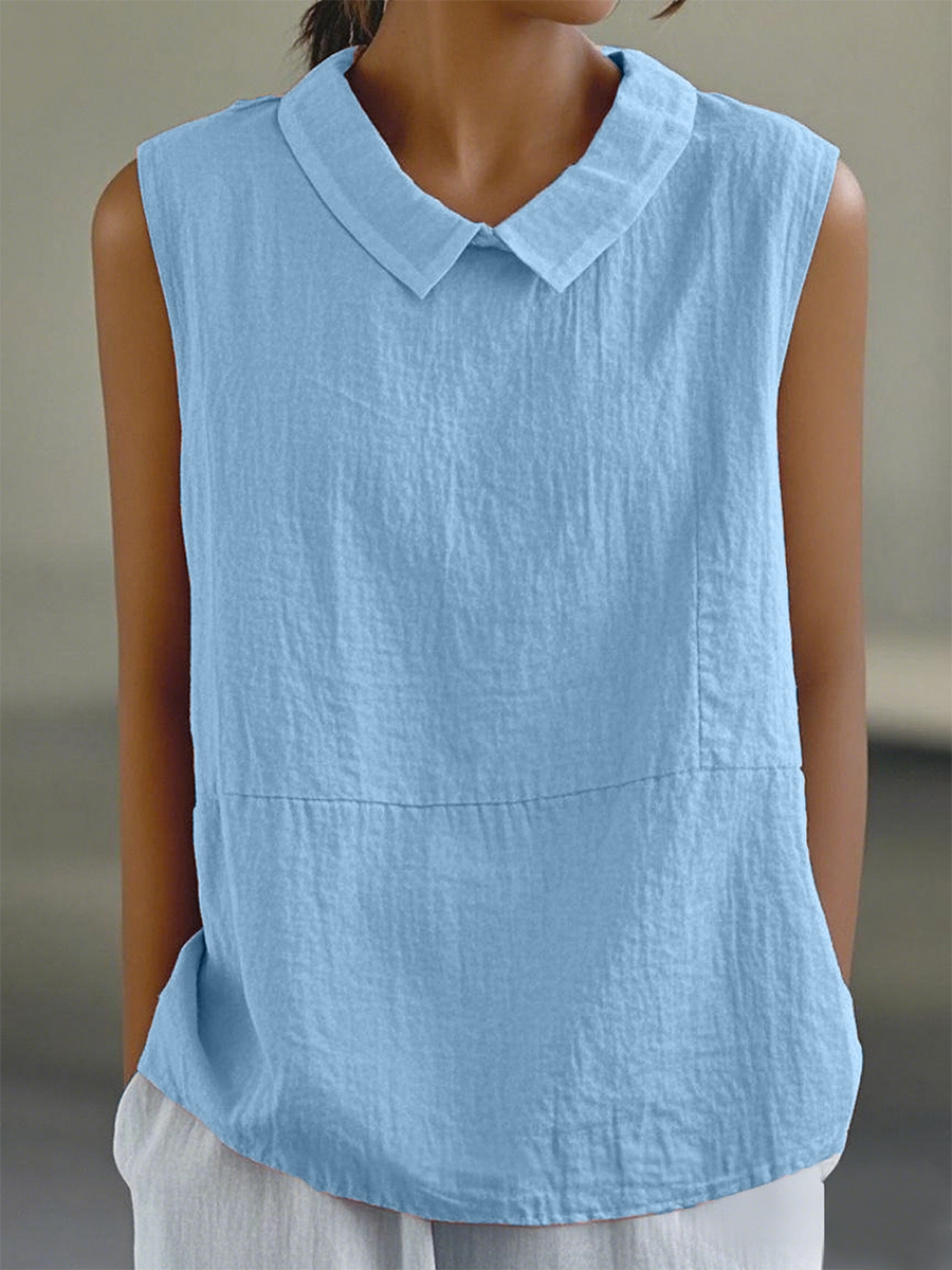 Camisa sin mangas de lino sólido simple para mujer