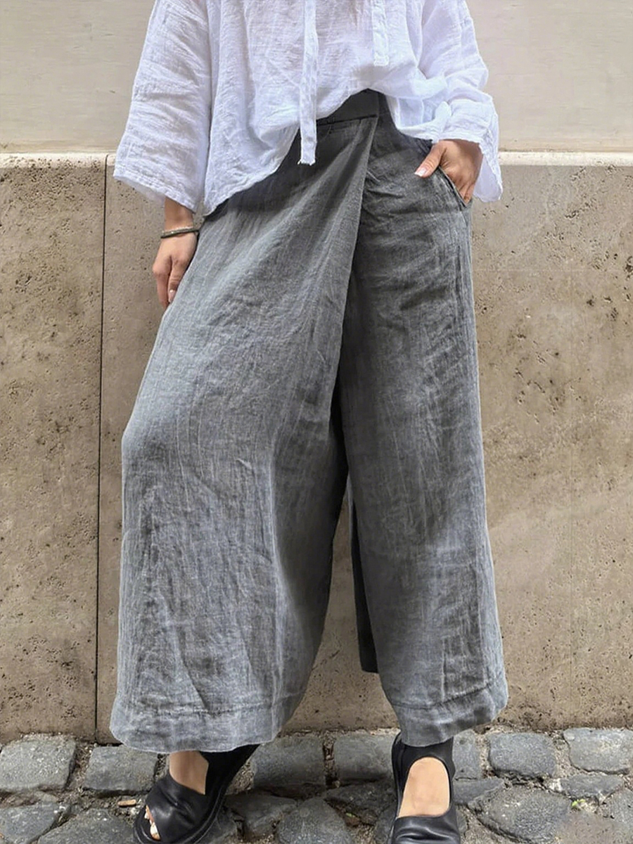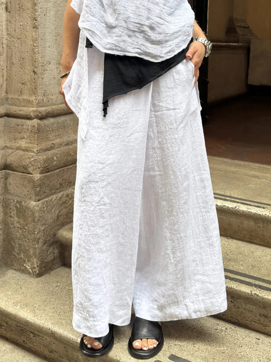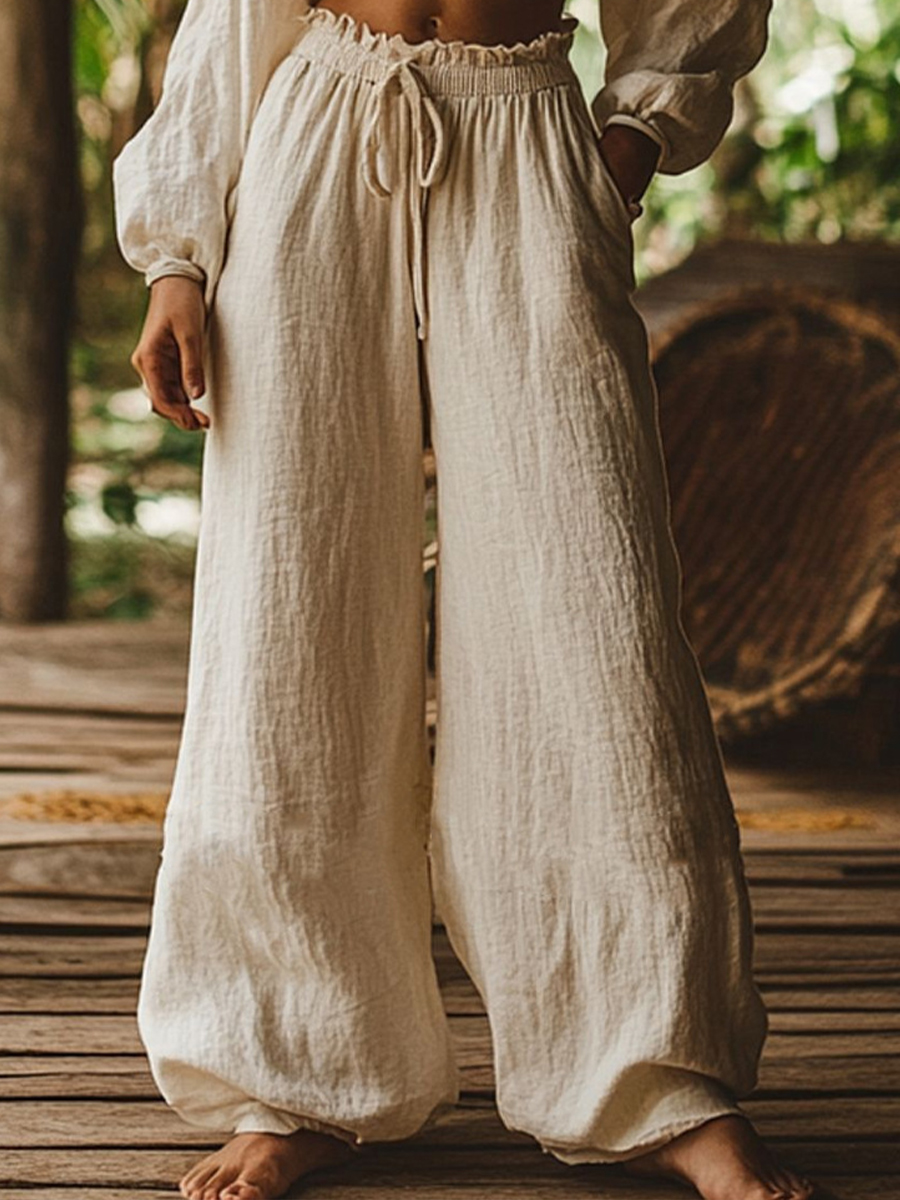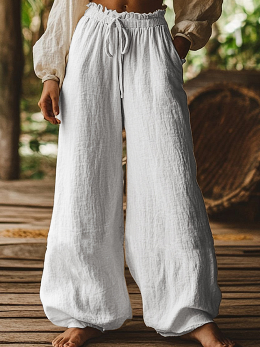 Pantalones de lino de color sólido y estilo sencillo para mujer