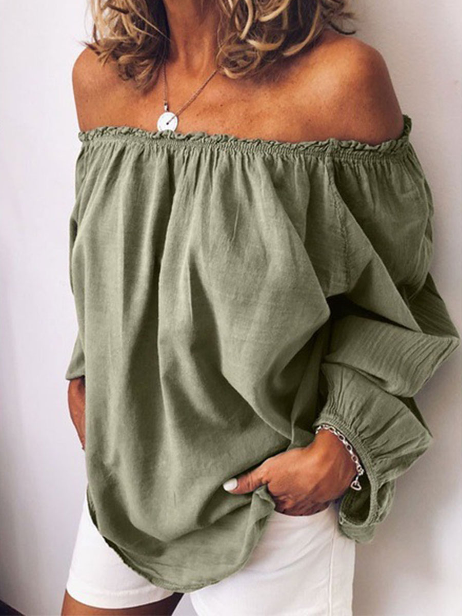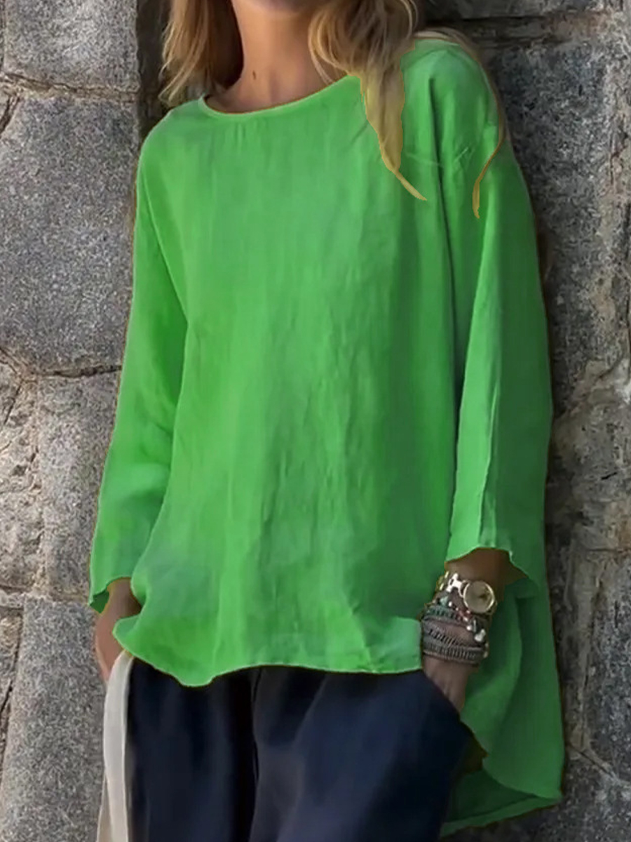 Camisa de lino de color sólido y estilo sencillo para mujer