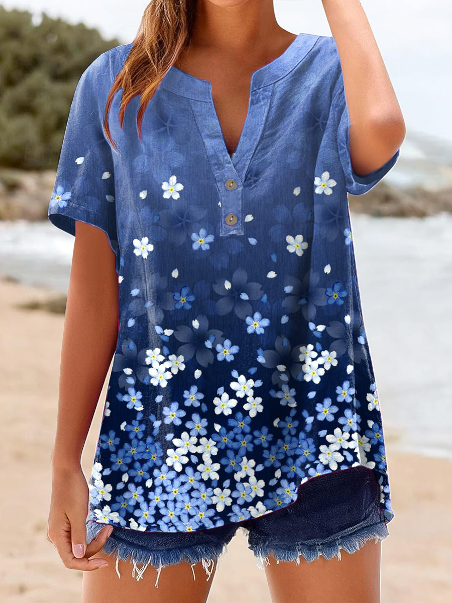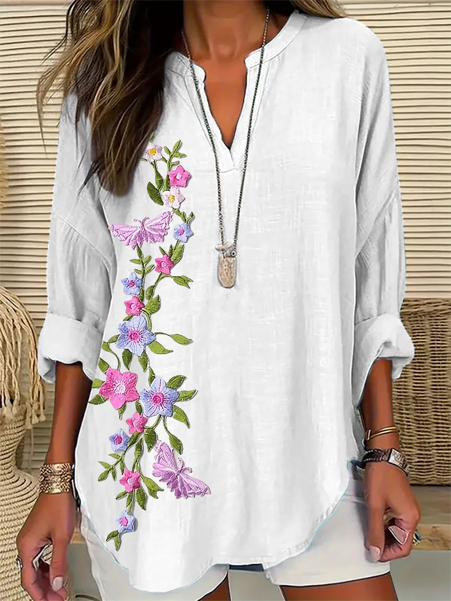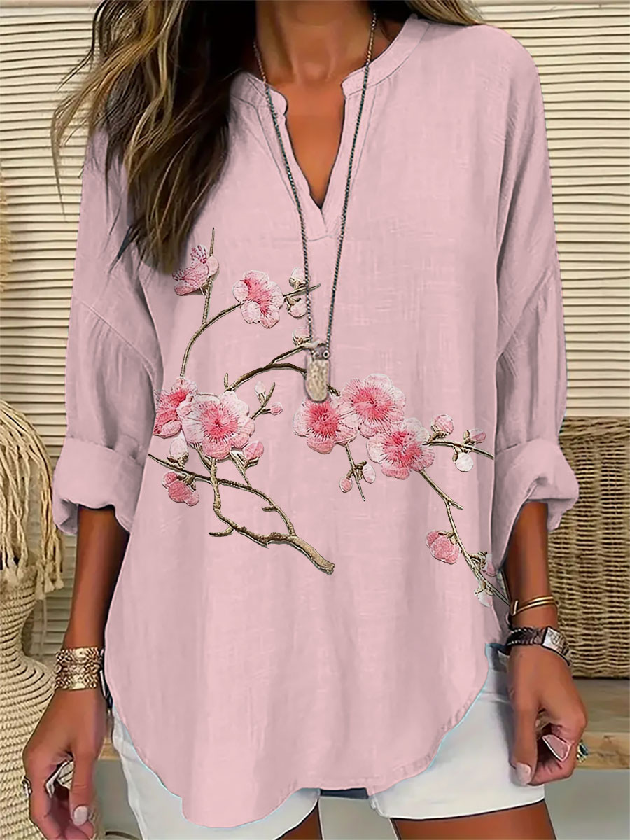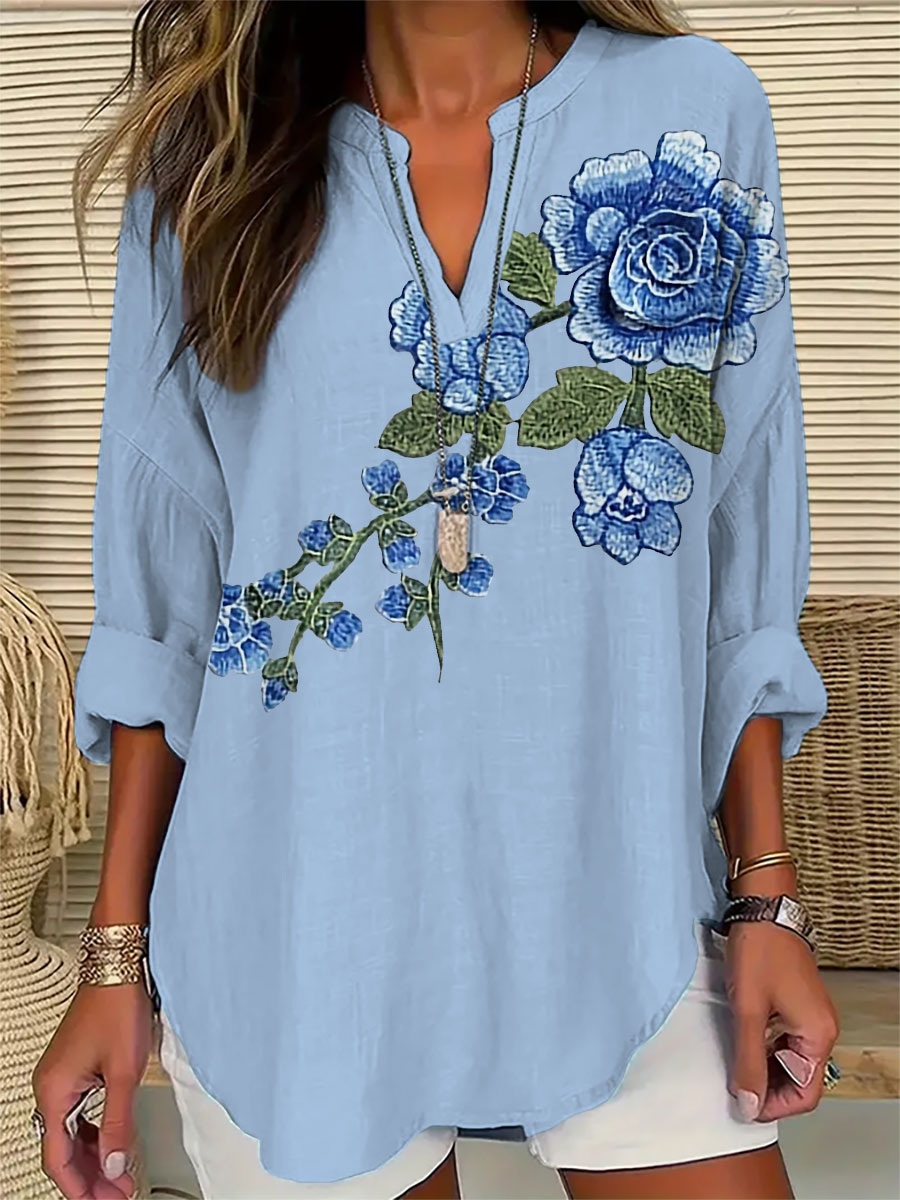 Camisa de lino elegante de la impresión del arte floral de las mujeres