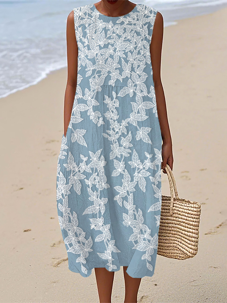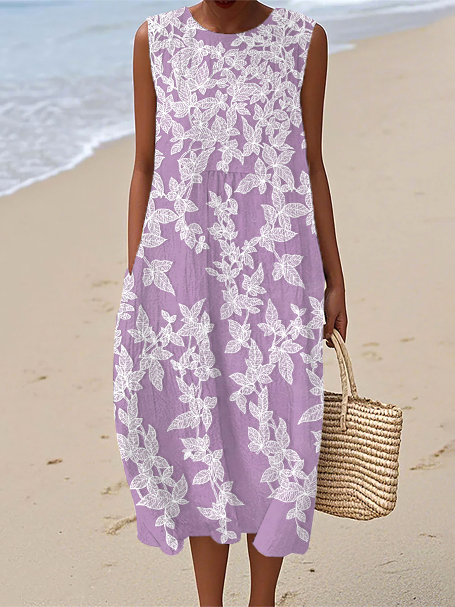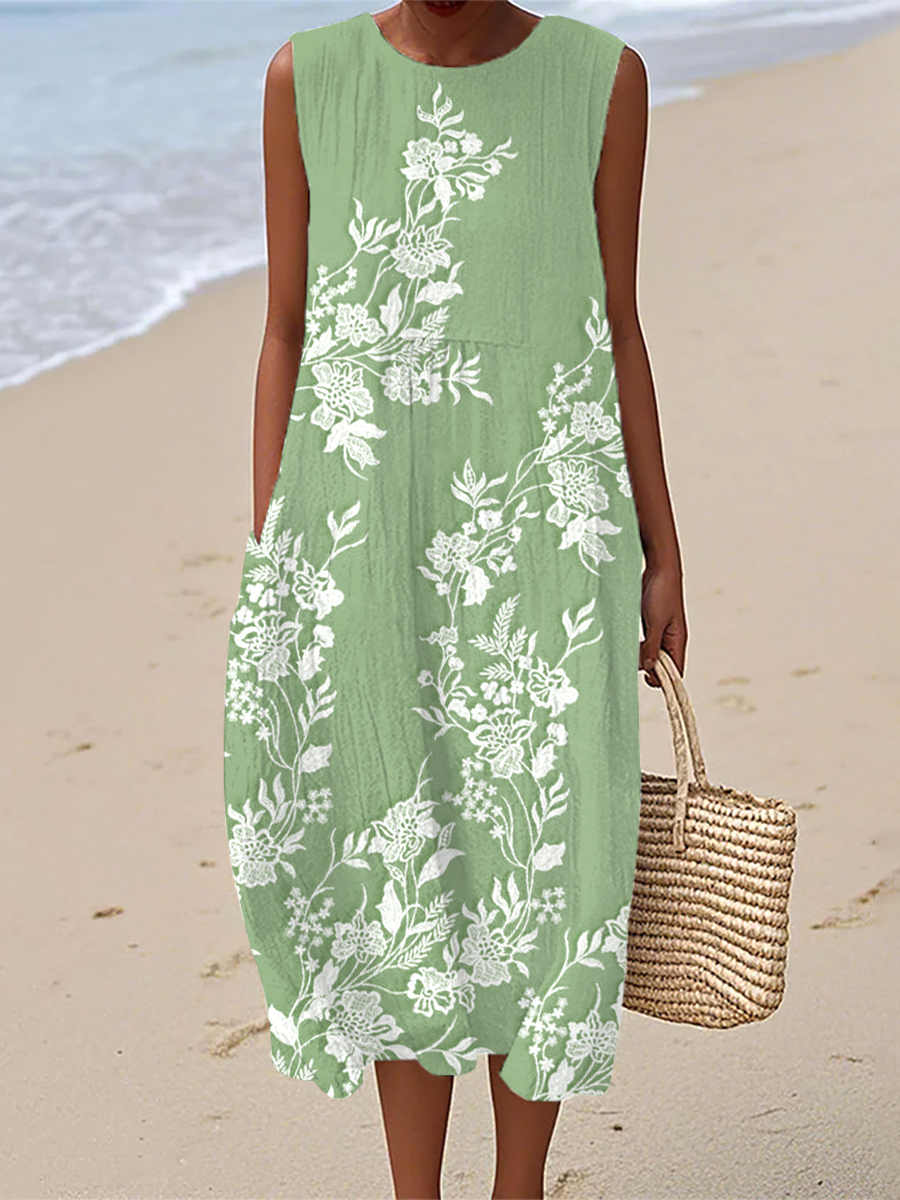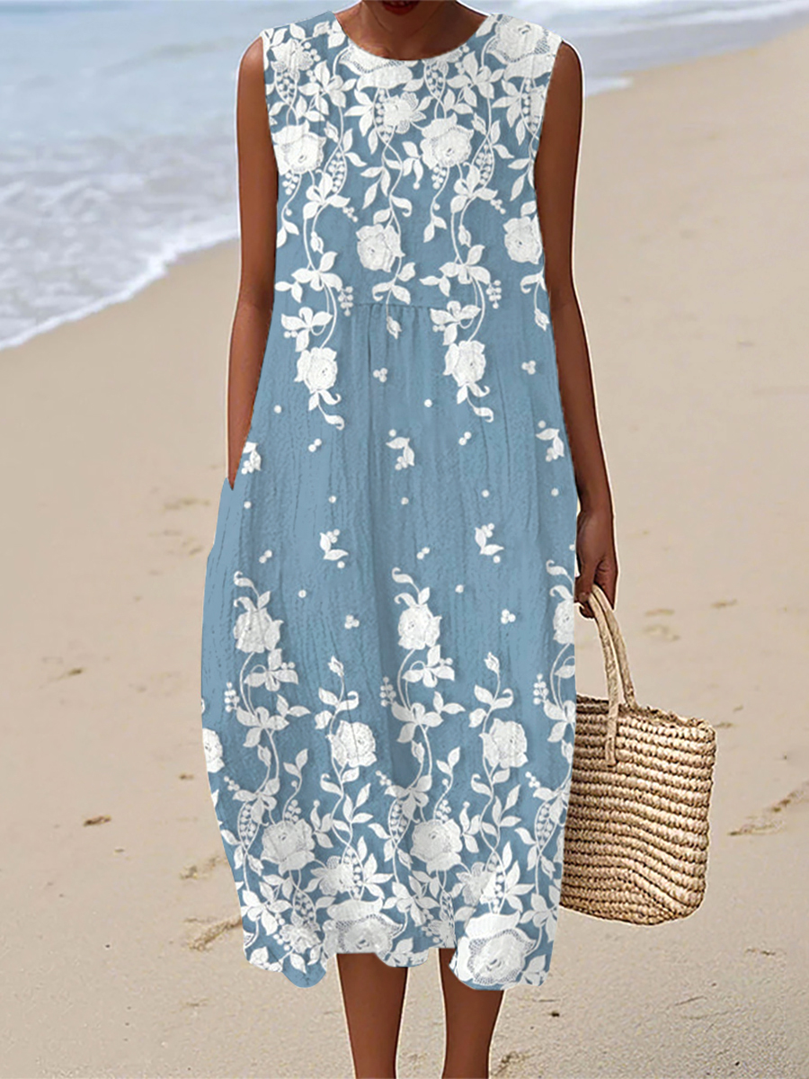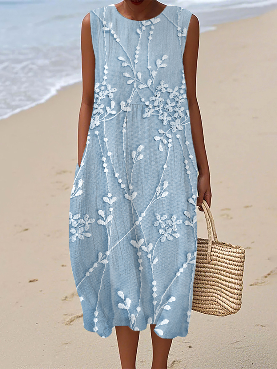 Vestido sin mangas de lino de encaje floral inspirado en las mujeres