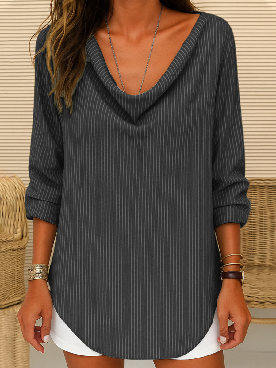 Camisa de lino a rayas vintage para mujer