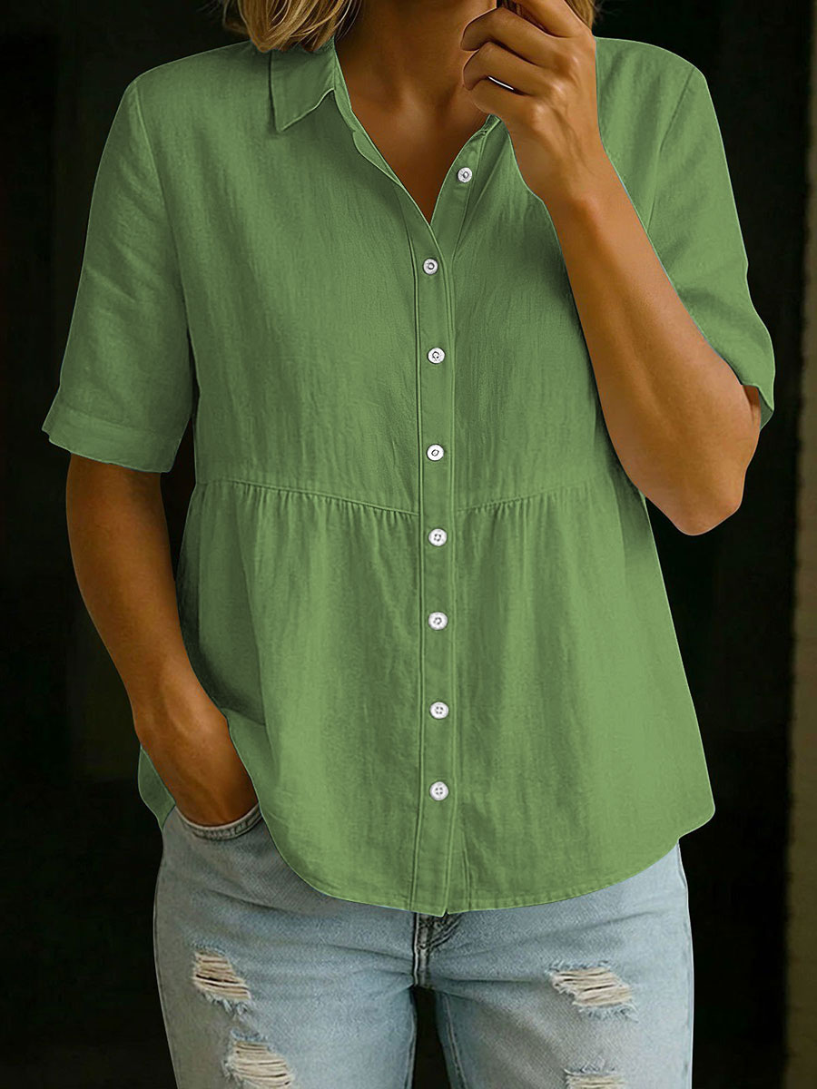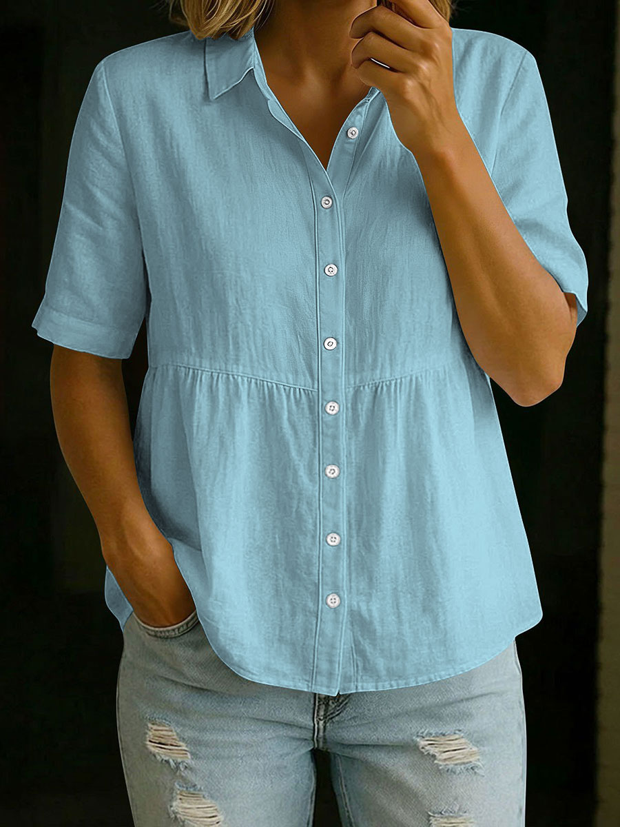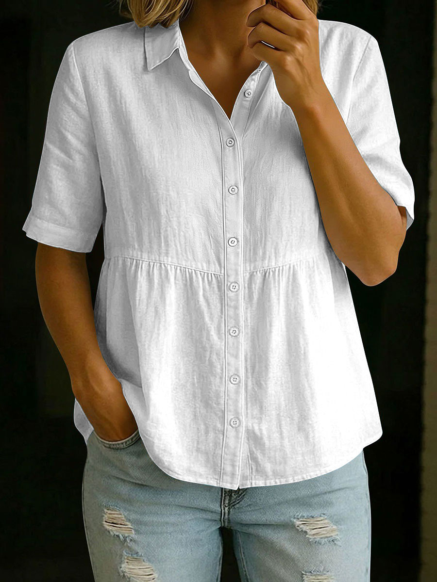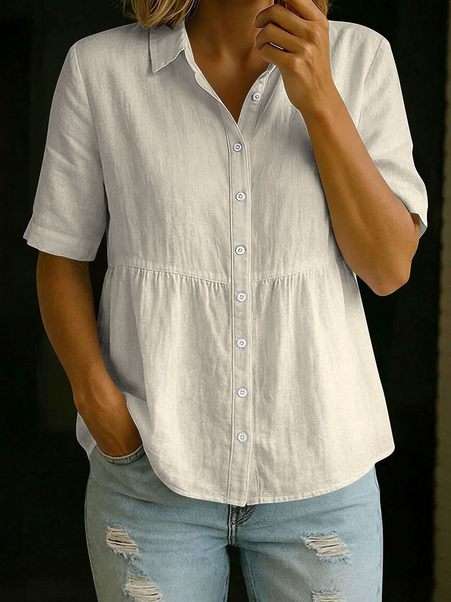 Camisa de manga corta de algodón y lino para mujer