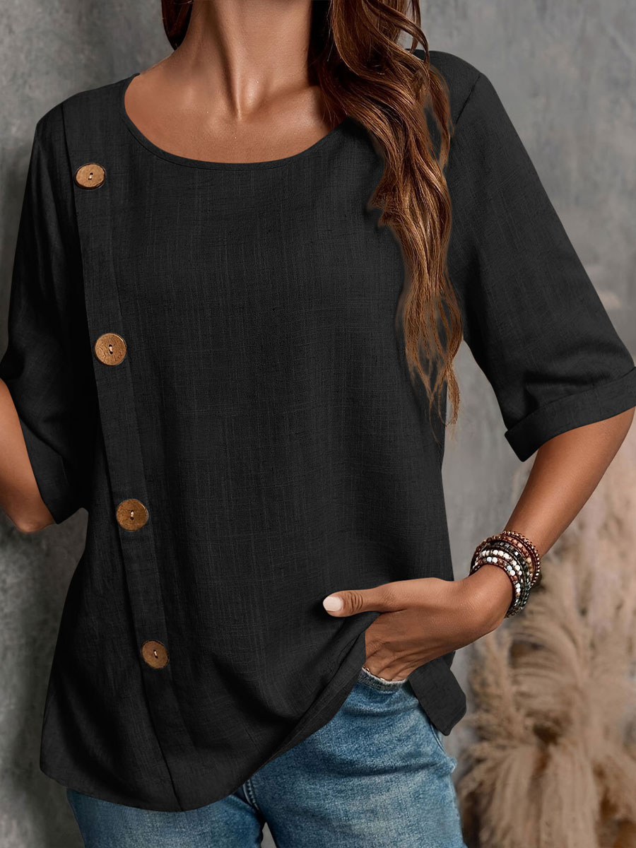 Camiseta casual de algodón y lino para mujer