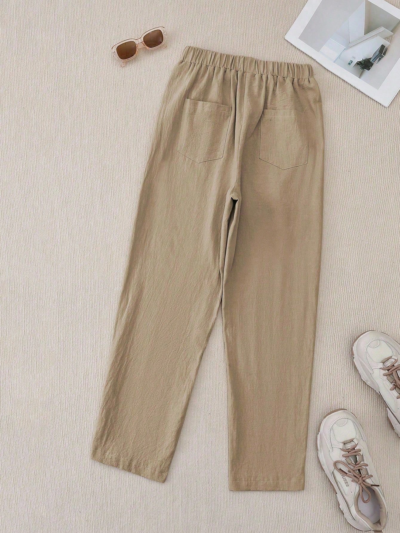 Mujer Color sólido Casual Diario Botón Lateral Recto Pantalones