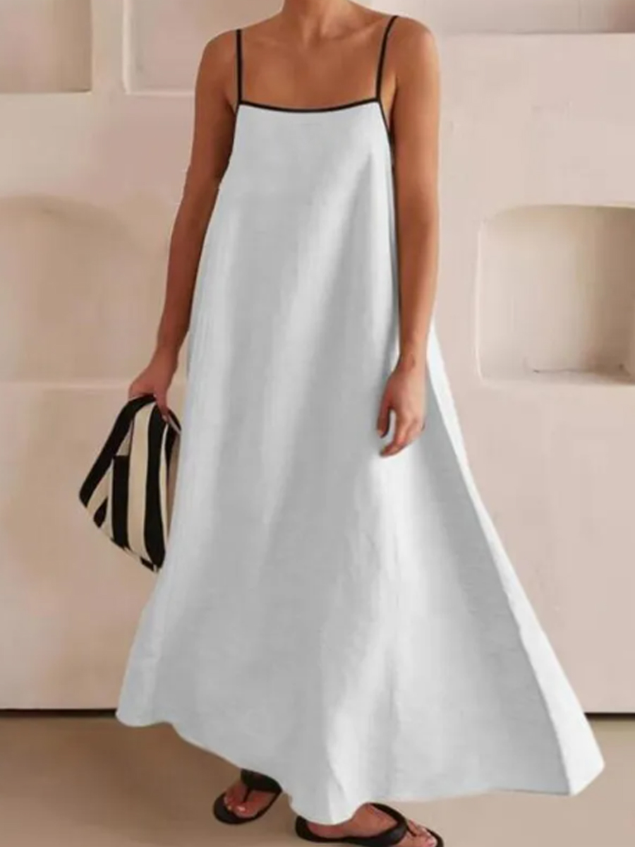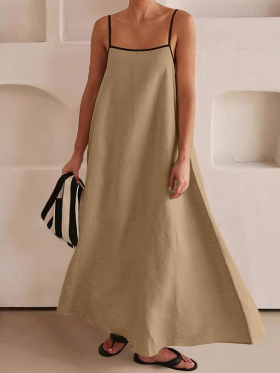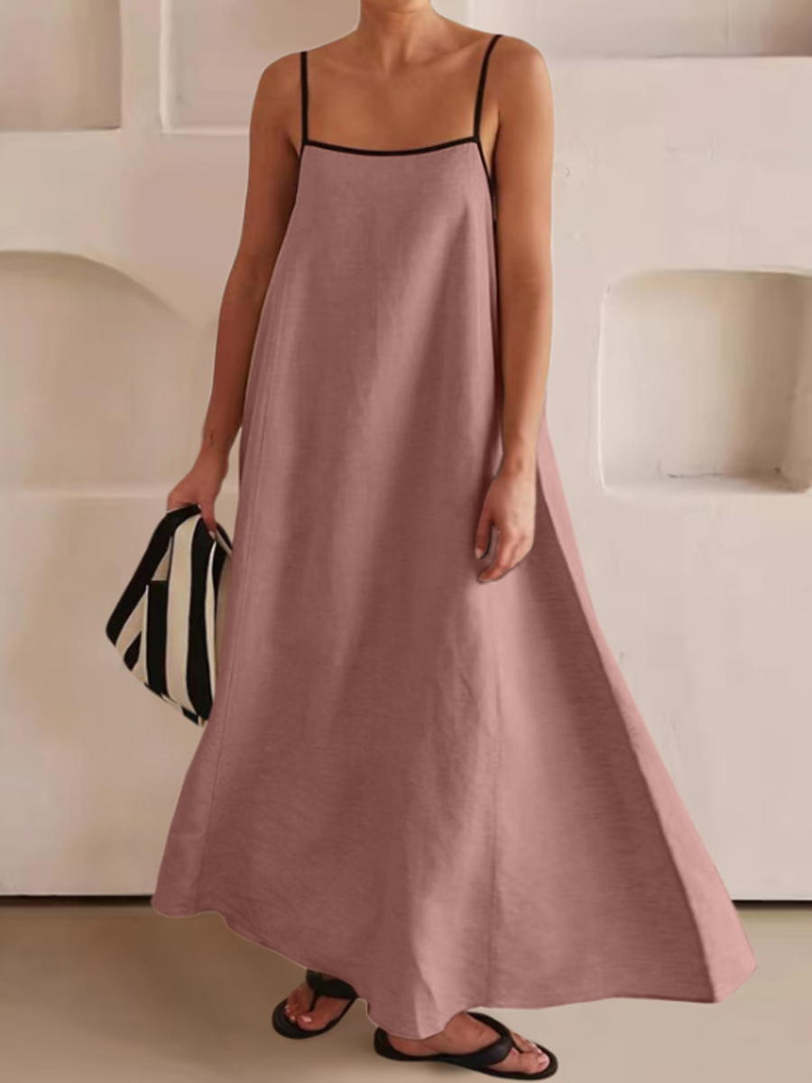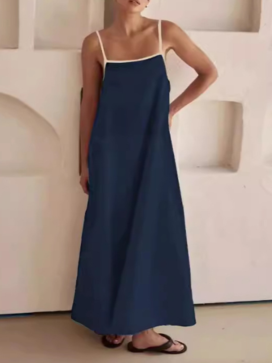 Vestido de algodón y lino de color de contraste de moda para mujer