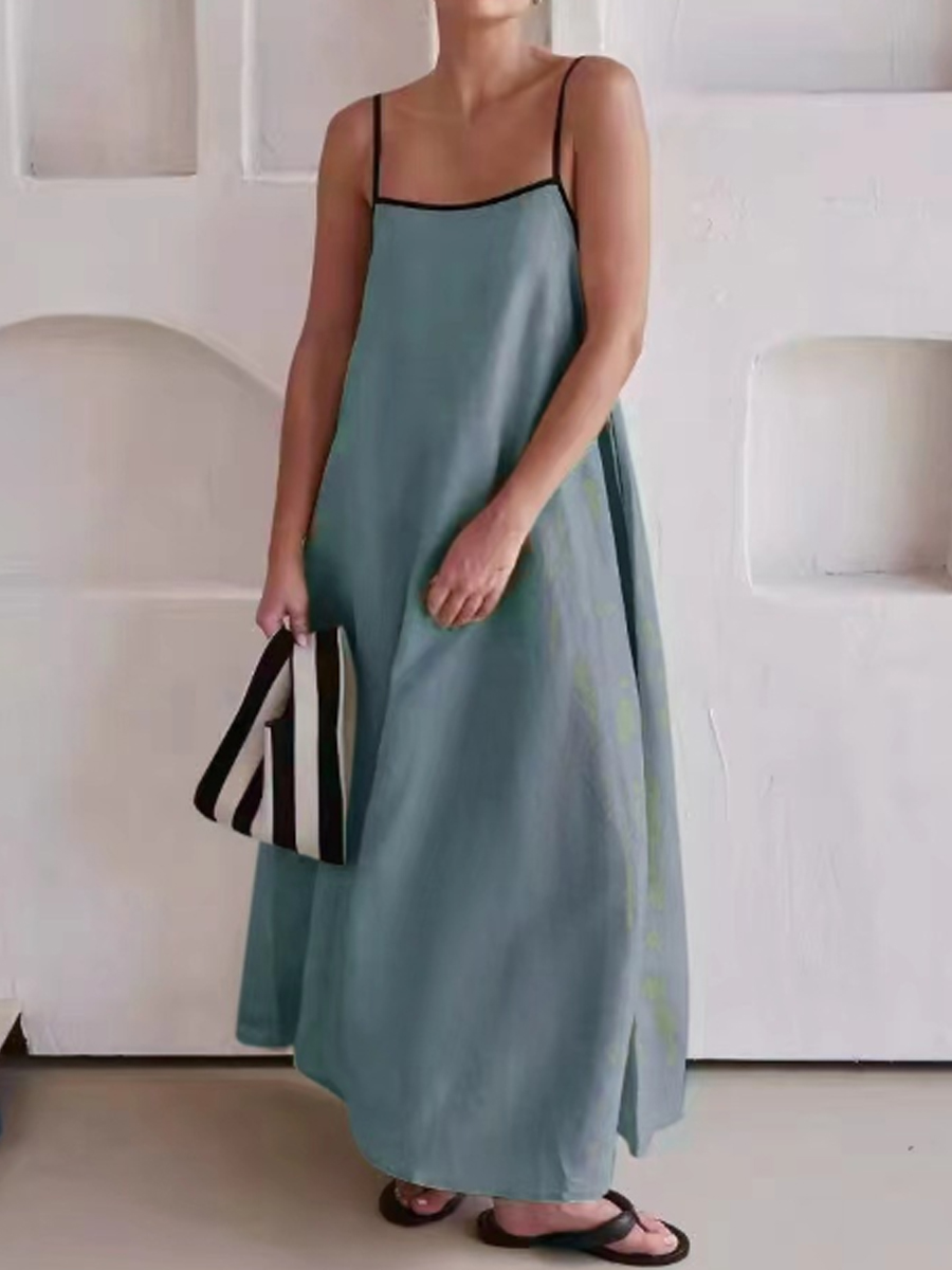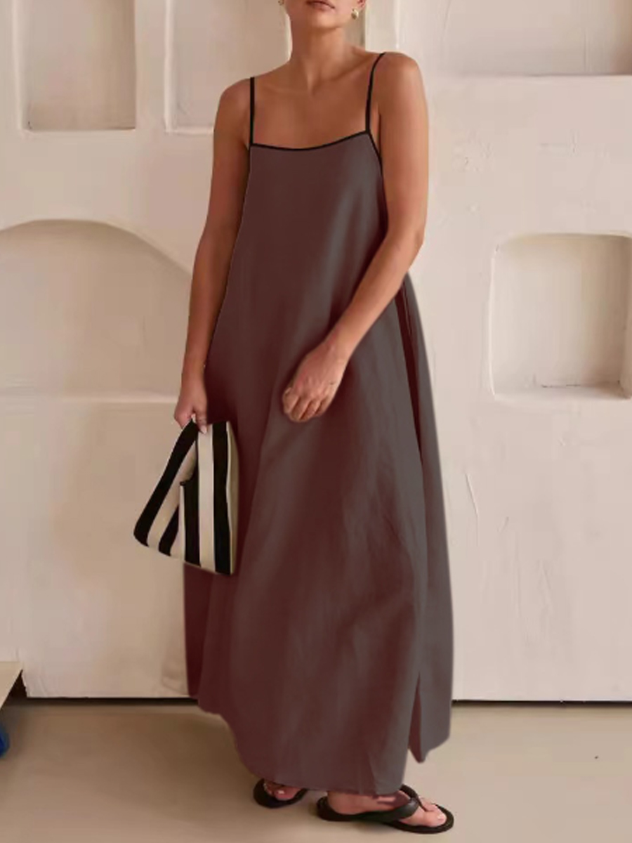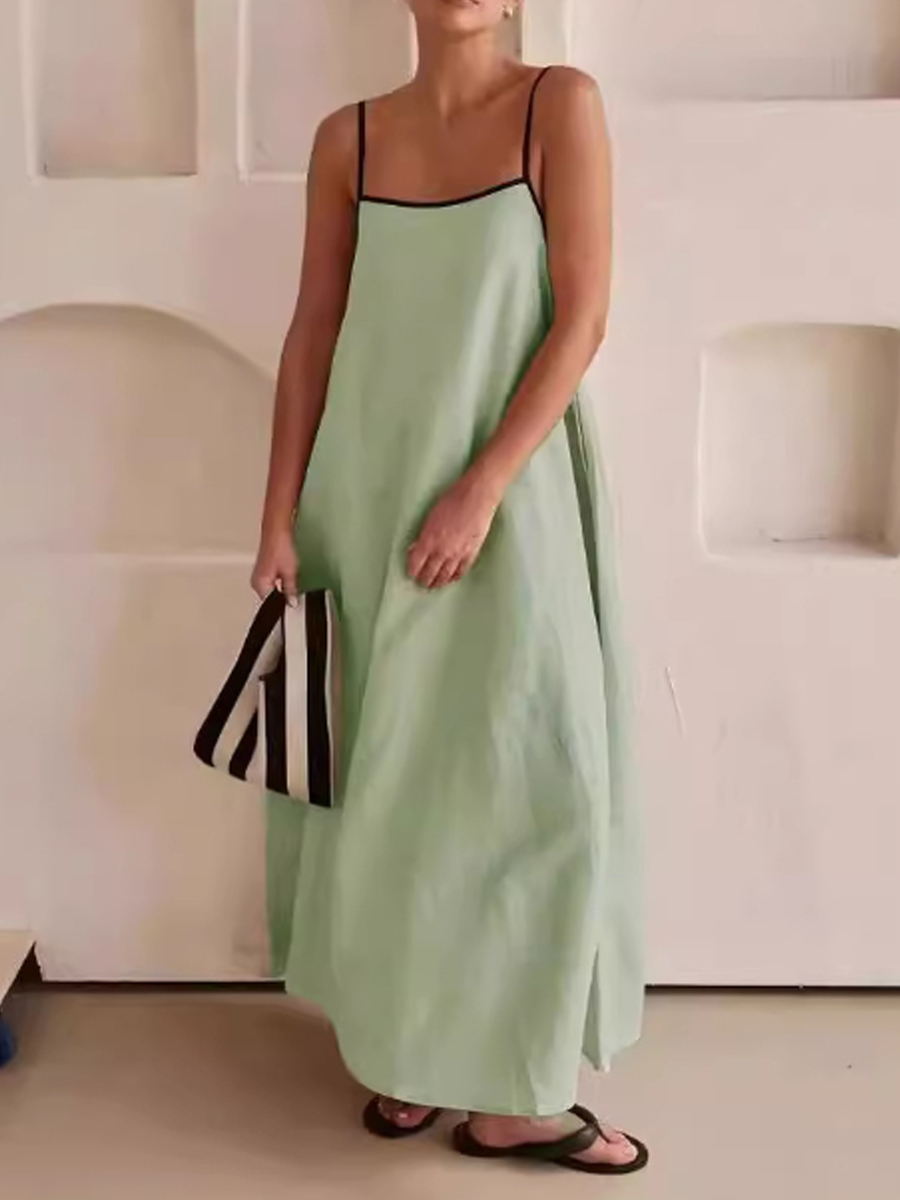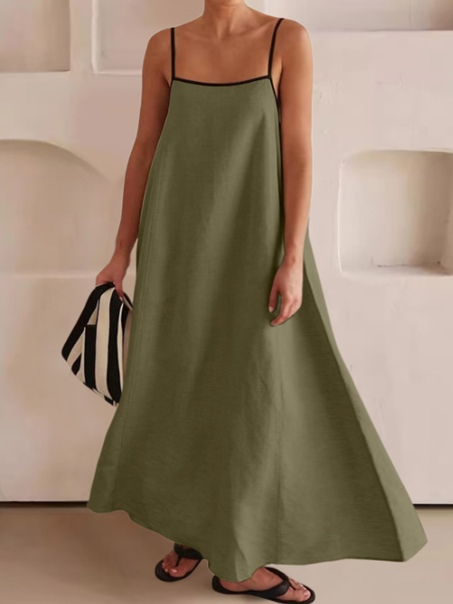 Vestido de algodón y lino de color de contraste de moda para mujer