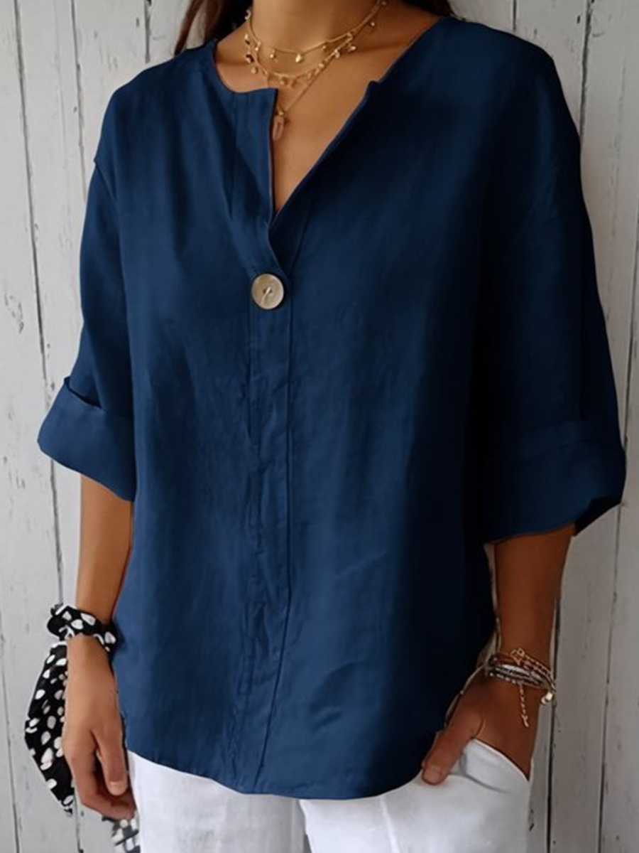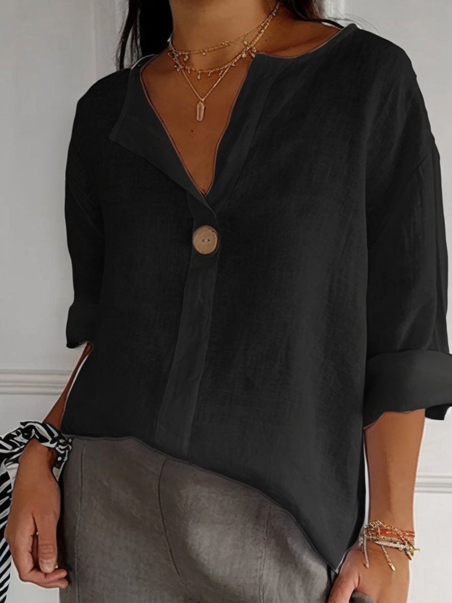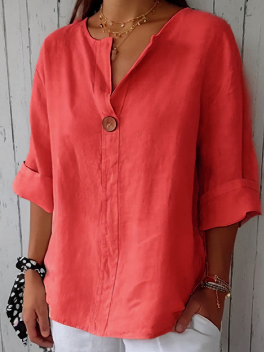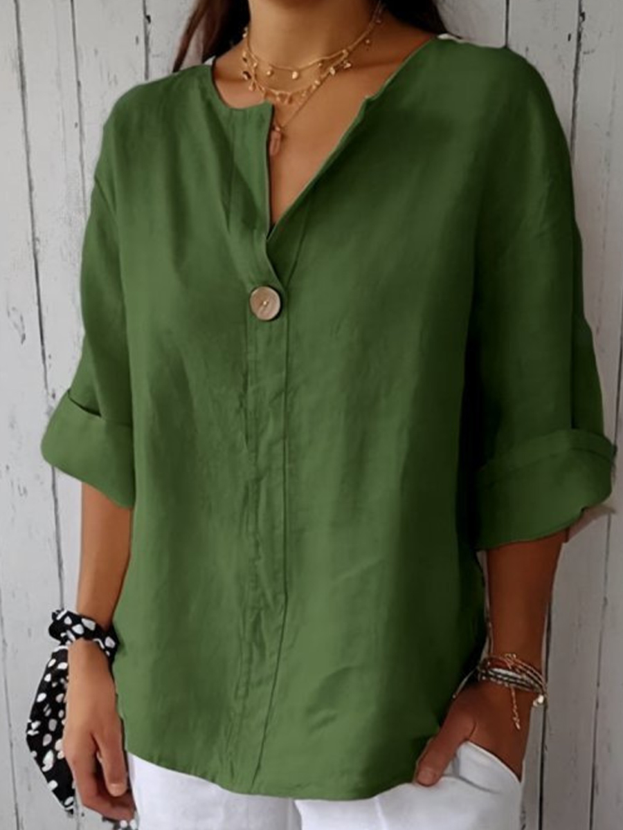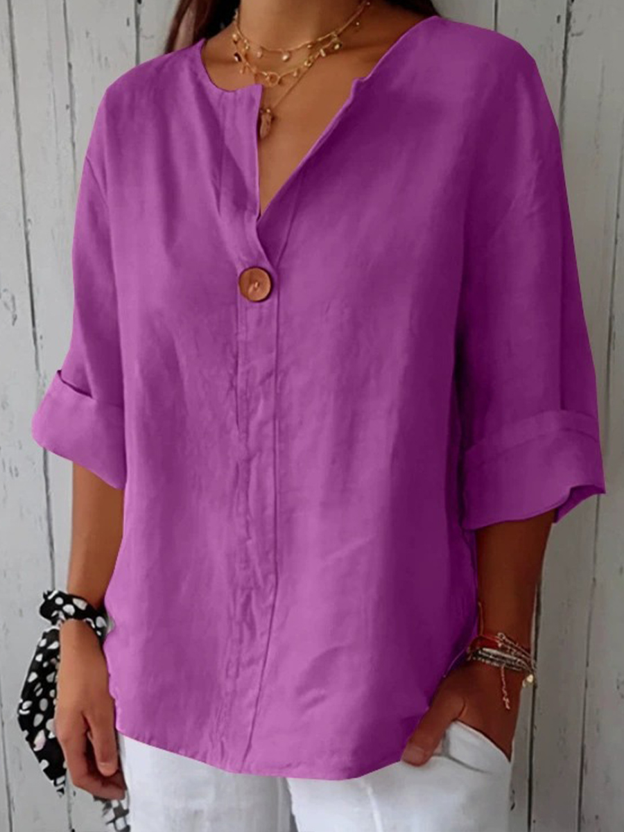 Camisa de lino de color sólido y estilo sencillo para mujer
