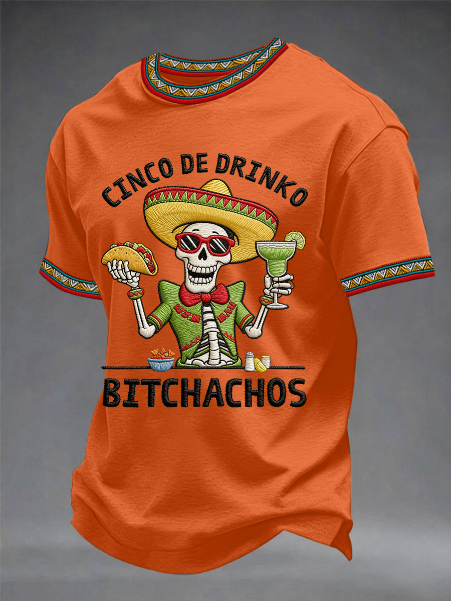 Hombre Cinco De Drinko Bichachos Esqueleto Fiesta Mexicana Imprimir Casual Tee